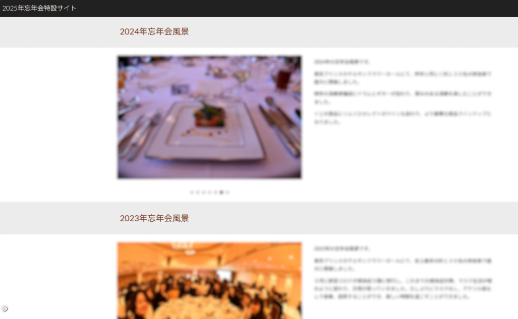 今年も忘年会の前に、社内向けの忘年会特設サイトが公開されました。