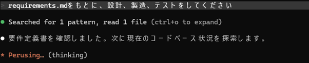 Claude Codeに「要件定義書をもとに設計・製造・テストをしてください」とPlanモードで指示をするときちんと作業計画を立ててそれを基にタスクを行なってもらえます。かなり便利。
