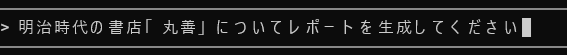 ざっくり結果を見てみたのですが、「旧称・丸善商會」は違うんじゃないかなぁ。丸屋商社だったはず。おそらく文献として提示してきた『商人立志伝』の「丸善商會」という記述をそのまま持ってきたのではと判断。細かい事実関係は要確認ですが、ざっくりそれっぽいものは作られていました。創業者名は合っています。
